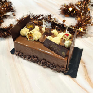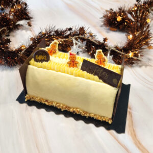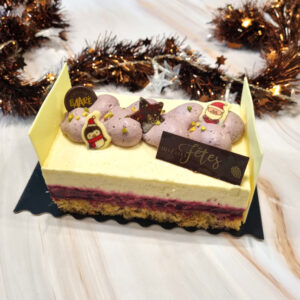 Vous aurez trois parfums de bûches, une bûche glacée ainsi qu’un plateau de petits fours salés frais en édition limitée, disponibles en précommande.